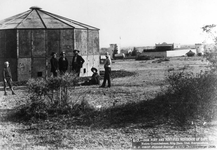 Three of these forts made their way to the north, and in April 1888 the first one was erected on the farm Klipdam, some 30 kilometres north of the then Pietersburg (not far from the well-known “Wawielbrug” next to the N1). This was the farm of Oscar Dahl, the Native Commissioner for the Northern Transvaal. The double-storied house on the farm was fortified by cannon at two of the corners.