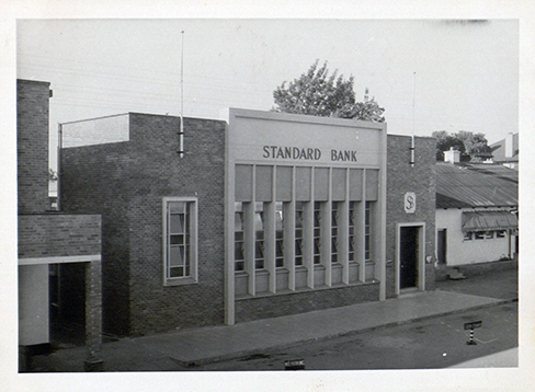 In 1947, Standard Bank had clearly outgrown its premises and started looking around for property centrally situated in town. The first option was to convince the landlord, Mr NS Erleich, to enlarge the office space. Seemingly this did not happen and prior to 1952, when the lease period was about to expire, Standard Bank rather opted to buy a site and build new offices. An option came up to buy an empty site in Krogh Street for £7 500. The site was ideally situated between the municipal building and the post office.