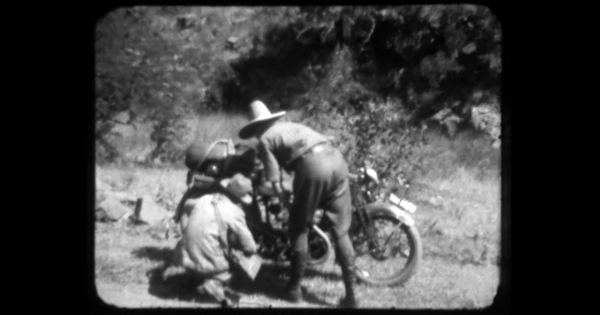 The touring party also stops to assist a motorcyclist. The registration number on the motorcycle begins with “TM”, indicating a Transvaal number plate and suggesting that Oom Willem was indeed visiting the Transvaal. As for the motorcycle, it is most likely a British-made BSA Model S or Model L, produced in the late 1920s. These bikes were very popular in South Africa. Featuring a side-valve engine, they were reliable and simple. The motorcycle in the film exhibits similar fender shapes and seating to the BSA.