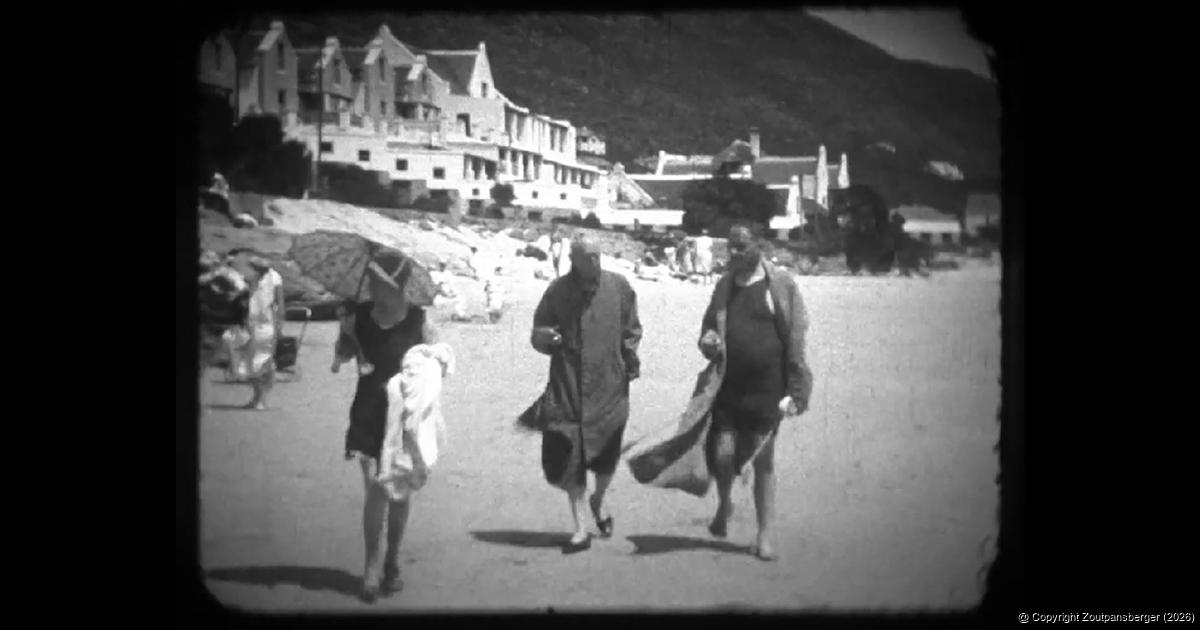 From 07:00, the group is back by the sea, most likely at St James Beach on the False Bay strip, recognisable by the Edwardian-era hotels and gabled apartment blocks along the seafront.