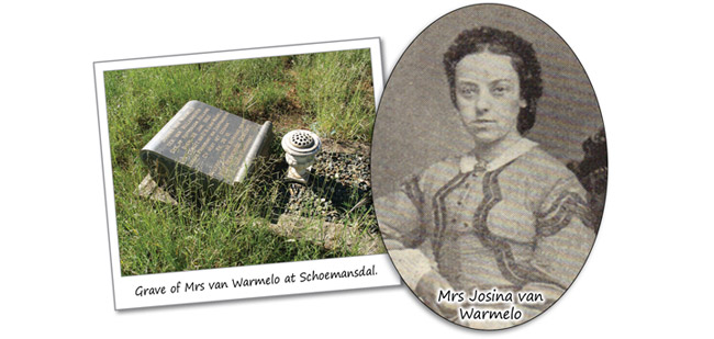 The Schoemansdal people were quick to embrace the Dutch reverend and sympathised with his losses. In February 1866 Van Warmelo attended the church’s general assembly in Potchefstroom. When he returned the local congregation had put up a tombstone on his wife’s grave and planted a bed of roses around it.