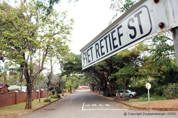 This week we turn to a rather secluded and fairly small street in the upper part of town, namely Piet Retief Street. It was, obviously, named after the Voortrekker leader, Pieter Retief, who was killed by Zulu chief Dingaan on 6 February 1838, only a year or so after Louis Trichardt’s trek reached the Soutpansberg.