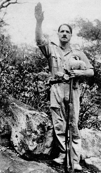 Left: Robey Leibbrandt giving the German salute while hiding at the farm of Mrs Eggert in the Magaliesburg mountains. Right: Robey Leibbrandt giving a salute outside the court after being sentenced. (Source: www.leibbrandt.com)